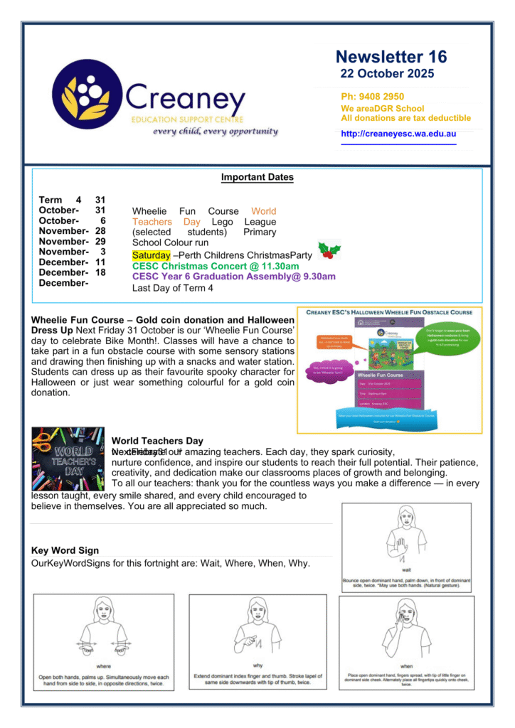 "My Son has been attending Creaney ESC since 2022, and to say that it has changed our lives would be an understatement. The staff are genuinely caring and dedicated professionals who will celebrate every achievement and support every struggle no matter how big or small. Collaborating with staff as a parent has been a seamless privilege that in turn has benefited my Son immensely. Watching my Son grow and develop as a child with special needs has been so heartwarming with the wonderful guidance of Creaney Ed Support. Our school community have become like family, and I honestly couldn't thank staff enough for the positive impact it has had on our lives."